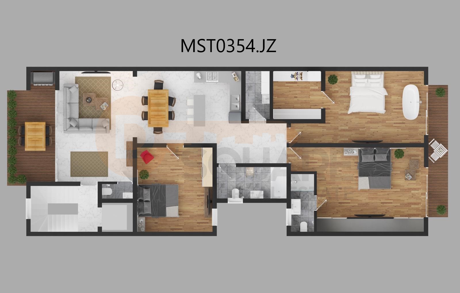 The property comprises of an open plan kitchen, living, dining area, 3 spacious bedrooms, one with en-suite, one with walk-in, main bathroom, laundry room, guest rest room, front and back terraces.